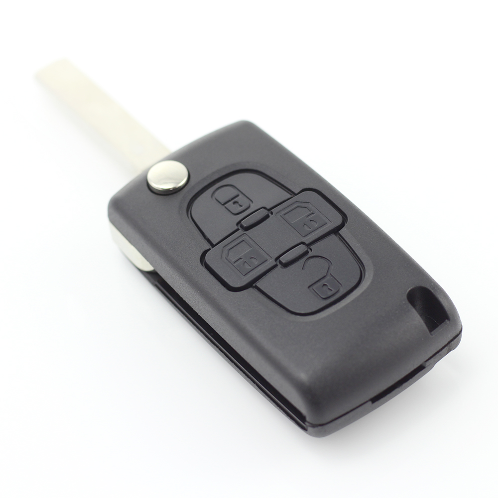 Citroen / Peugeot – Carcasa tip cheie briceag cu 4 butoane, fara suport baterie, model VA2-SH4   Inainte de finalizarea comenzi pt acest articol, va recomandam sa analizati si sa comparati in detaliu carcasa originala, lacasul electronic, suportul de baterie tipul de lama etc…
