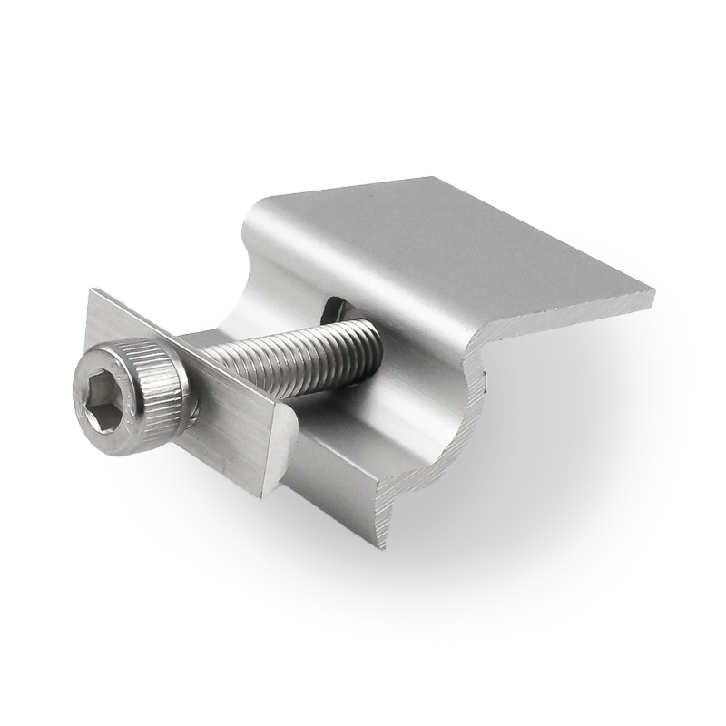 Clema capăt pentru monaj panou fotovoltaic Compatibil cu: RAY032 Material: aluminiu 6005-T5 Dimensiuni : 40x44mm Compatibil cu panouri de la 35mm