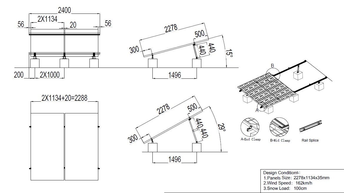 Kit complet de montaj pentru 2 panouri – Reglabil 15-30°