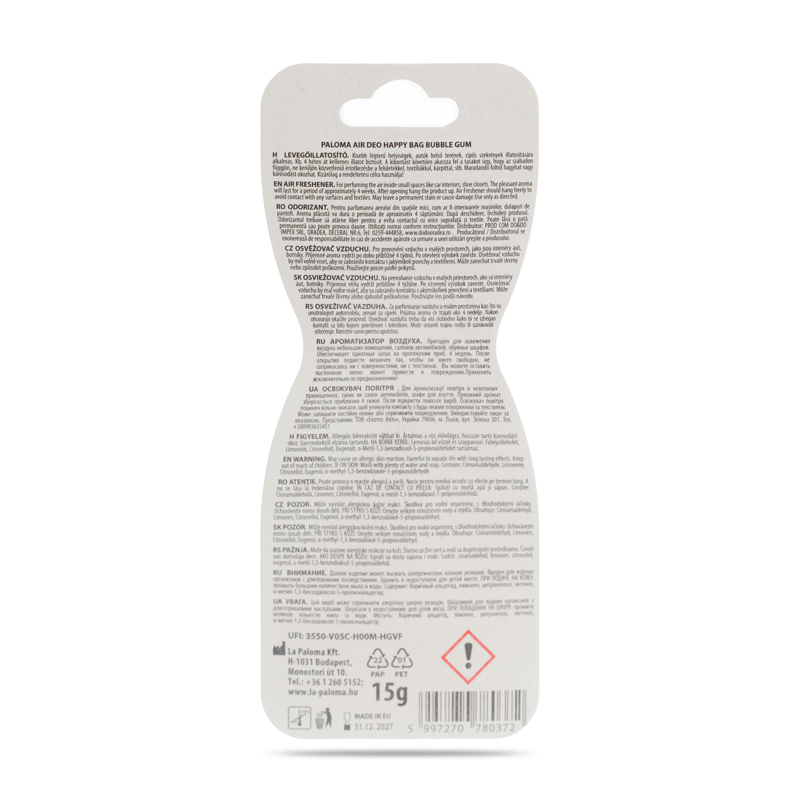 În concluzie, Paloma Happy Bag – Bubble Gum este soluția ideală pentru a aduce bucurie și prospețime în mașina ta sau în camera ta. Transformă-ți spațiul într-un loc plin de veselie cu acest produs plin de farmec!