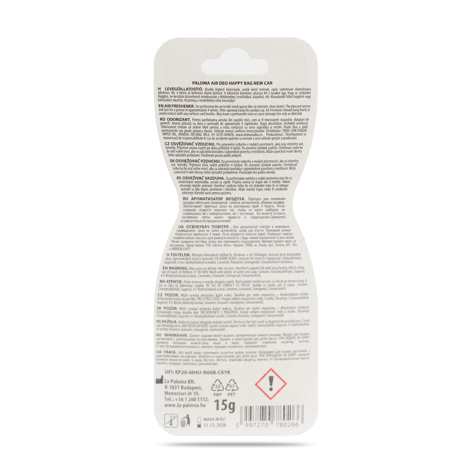 Achiziționează acum Paloma Happy Bag – New Car și bucură-te de aroma proaspătă și revigorantă în viața ta de zi cu zi!
