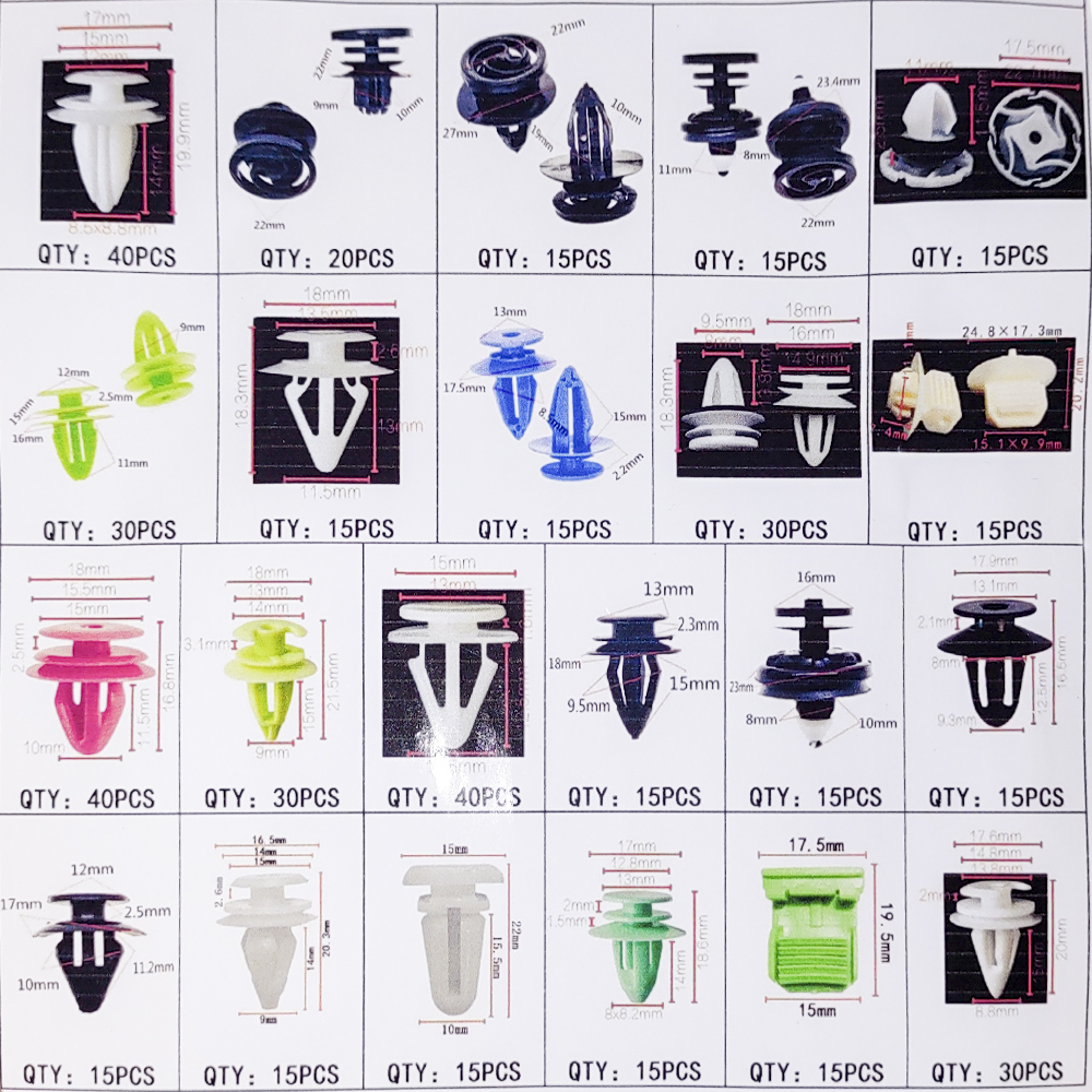 Această varietate extinsă de cleme acoperă o gamă largă de nevoi în ceea ce privește reparațiile auto. Indiferent dacă trebuie să lucrezi la caroseria mașinii, la interior sau la alte componente, acest set îți pune la dispoziție instrumentele potrivite.