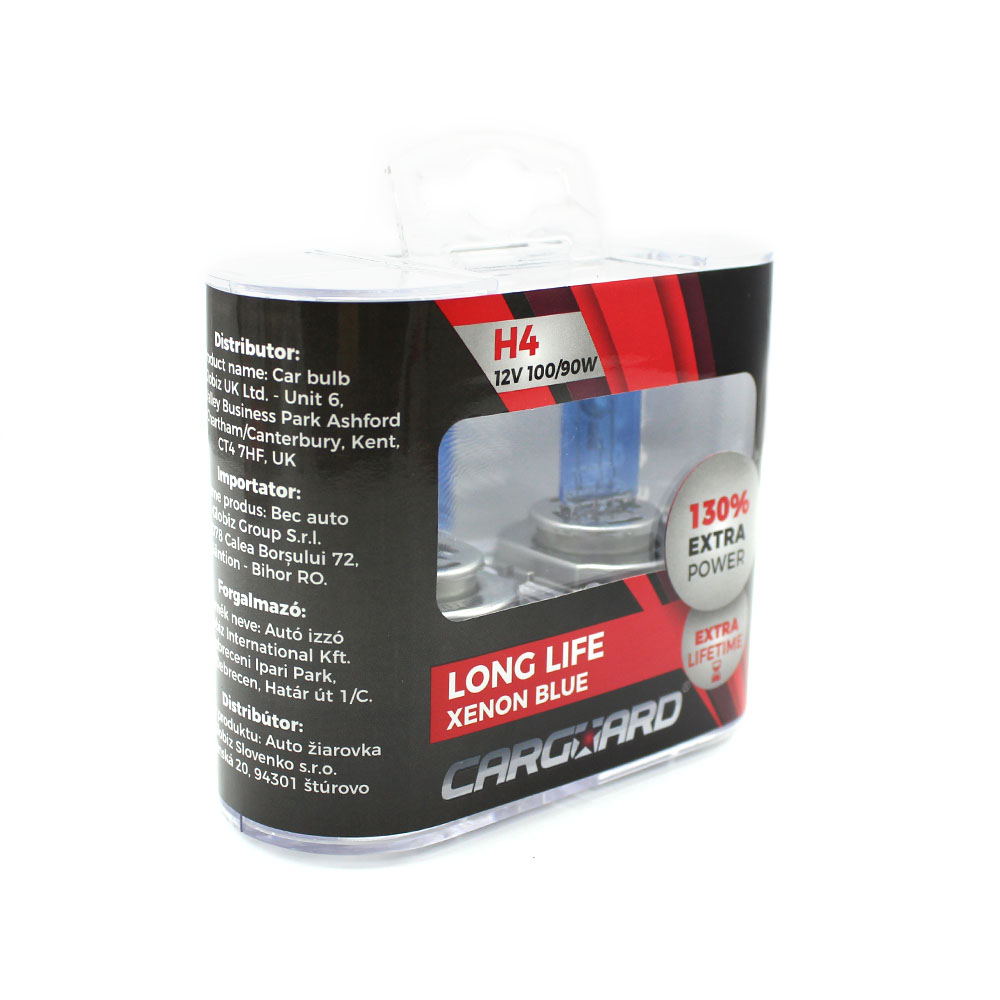 Set de 2 becuri Halogen H4, 100W +130% Intensitate – LONG LIFE – CARGUARD