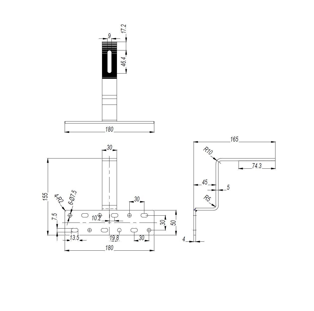 Placa de bază: 180 x 50 x 5mm
