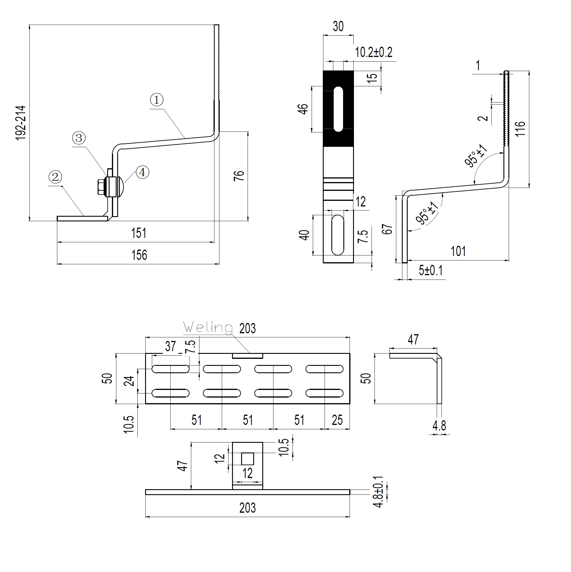 Suport reglabil pentru fixare panou fotovoltaic pe acoperiș cu țiglă